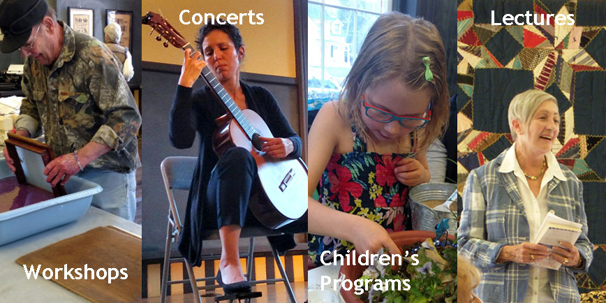 We’ve hosted regular concerts—classical, opera, jazz, bluegrass/folk, eclectic, in both romantic cabaret style and full one-hundred-seaters; fine art festivals, traditional craft and art classes, and exhibits; lectures, book signings, writers’ conferences, film series, gardening workshops, beer tastings, cooking classes, children’s programs, and more, partnering with other groups for many of these events. My head spins to think of all we’ve pulled off. What a joy to hear a string quartet, jazz ensemble, or classical guitar in that spacious second-floor concert hall, with its first-class grand piano and amazing acoustics, while sipping a glass of wine, transported to a peaceful place in my mind, floating in the music like a leaf in the breeze. At some point during each event, I have found myself looking around in grateful awe, eyes tearing.