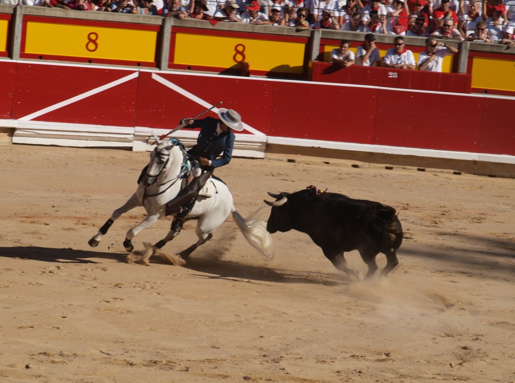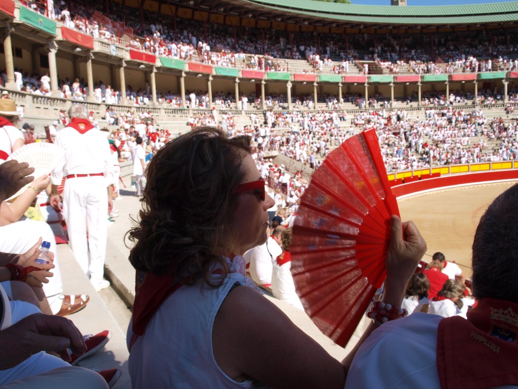 Nuntxi told me to come directly to the restaurant, since she would be at work; her sister would take me to the apartment and give me a key. When I arrived, we hugged and she handed me a gift in a small envelope. I had already decided that I did not want to attend the bullfight, which I felt to be a barbaric custom. But here was a ticket to the opening evening, when toreadors perform on horseback. How could I refuse my friend’s generous present? I smiled and thanked her. So I watched the death-defying dance of man (they were all men), prancing horse, and desperate bull, defiantly fighting for its life but ultimately doomed, stumbling around the arena, bloody spears dangling from its flanks, dying to cheers and olés of the enthusiastic crowd, shaking their red scarves. Like a sports fan sitting in the stands of the opposing team, I didn’t belong there. Tears rolled down my cheeks as, over and over, well-known toreadors slowly and ceremonially murdered bulls in a centuries-old spectacle, now discontinued in many traditional venues. I did marvel at the graceful dexterity of the horses.