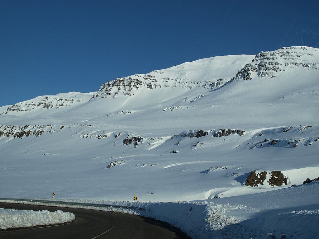 We cut across an inland road to avoid driving around the northeastern coastal route, which would have taken too long for us to keep to our two-week schedule; locals told us the road should be passable. The snow grew deeper and deeper as we climbed uphill and, with the ceaseless wind, near white-out conditions engulfed us. The road we had planned to turn on to head to the northern coast was closed, snowed out. We continued on; it was our only choice. The rental car was a small one with low clearance; we hadn’t thought we would need a four-wheel drive. Soon, there was a scraping noise coming from the bottom of the car. We pulled over and Adam squeezed underneath to find a plastic flap hanging down. He was able to hitch it back up, but this operation needed to be repeated several times until the downhill half of the route brought us to a small town. Armed with duct tape, my resourceful companion patched the flap and quiet returned to our drive. When we returned the rental car, we held our breath—they never checked under the car for damage so we didn’t incur any extra charges.