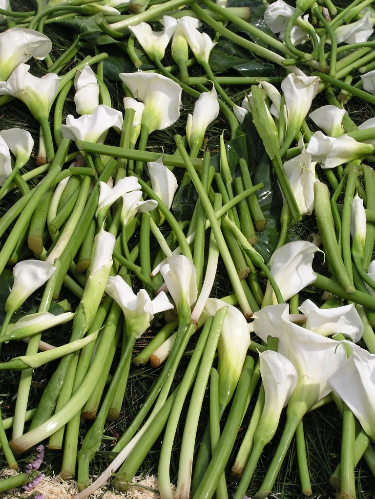 Before long, the crushed petals and strewn sawdust were swept up by municipal workers and shoveled into trash trucks. It looked as though the procession had never happened!