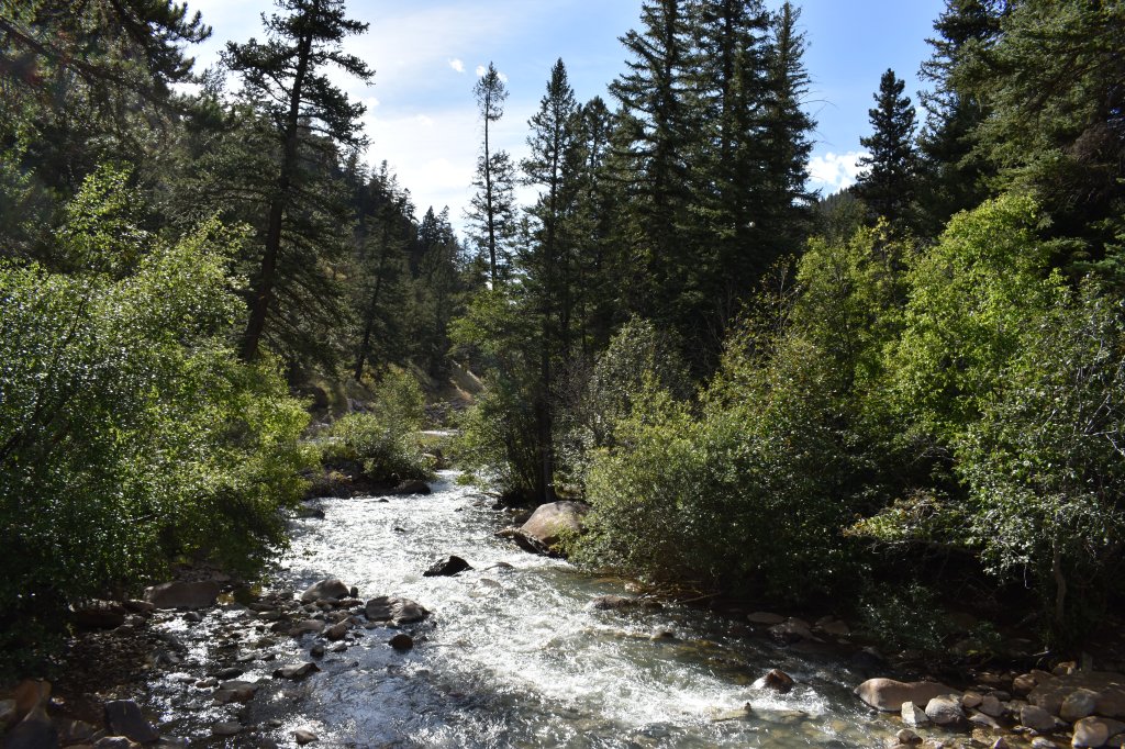 Shadows from intermittent clouds created dark shapes moving among the green hills. A stream, Geneva Creek, on its way to join the North Fork of the South Platte River, gurgled by.