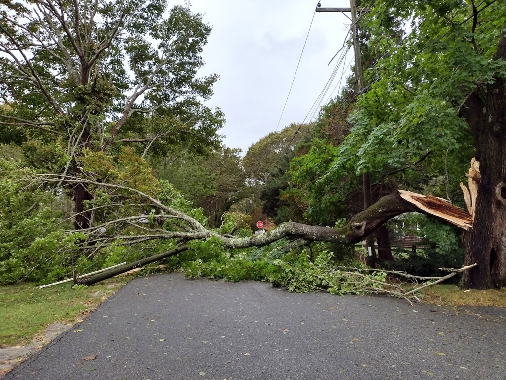 I drove to Falmouth in the rain. At the corner of their block, a tree had split, carrying a power pole with it as it fell. It would undoubtedly be a few days until power was restored.