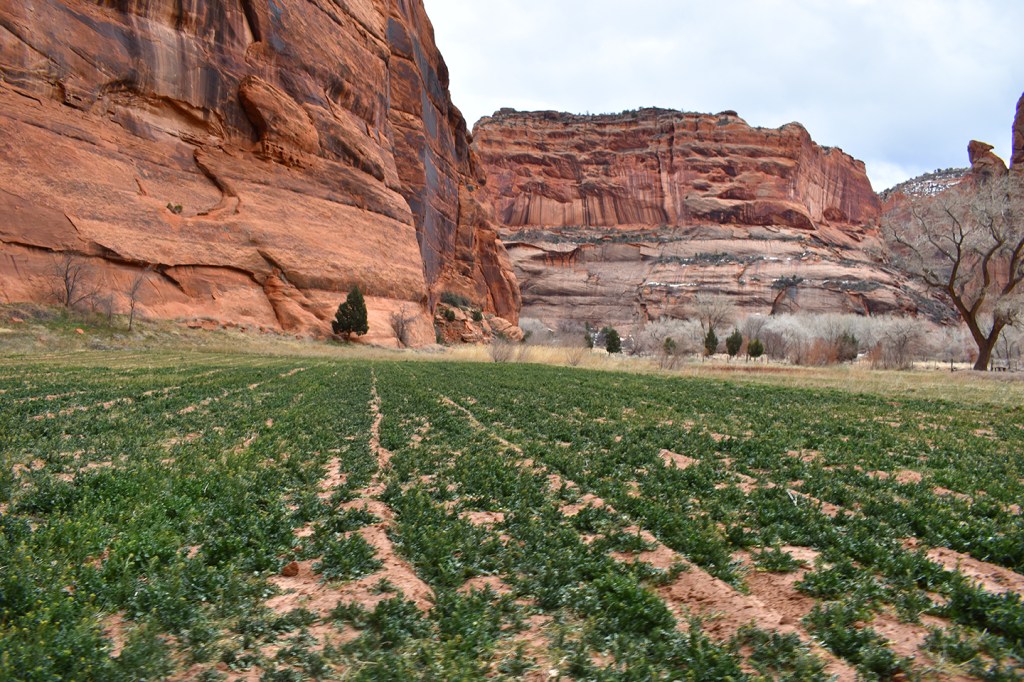 Jeep trip tours are required to enter the canyon these days. Cut by strong streams and washes, it’s understandable. The water flowing through the canyon was barely passable in sections and there are floods at some times of the year. In the morning, I rode, with Ben, an older Navajo man who lives in the canyon with his family most of the year. I had chosen to book this tour because the website claimed it was a with well-known Navajo storyteller. I was disappointed that his father came instead, saying that his son works mostly in the office booking tours, running the business. Ben was not very talkative at first, so I asked a lot of questions and he loosened up, telling me about history and life in the canyon. Their small home stands by the ruin called Antelope House in Canyon del Muerto, where the touring jeeps turn around. His family makes fresh fry bread and sells snacks and their own jewelry and crafts. I bought a small necklace with a turquoise stone made by the grandmother. Present day Diné farm and raise sheep and other livestock.