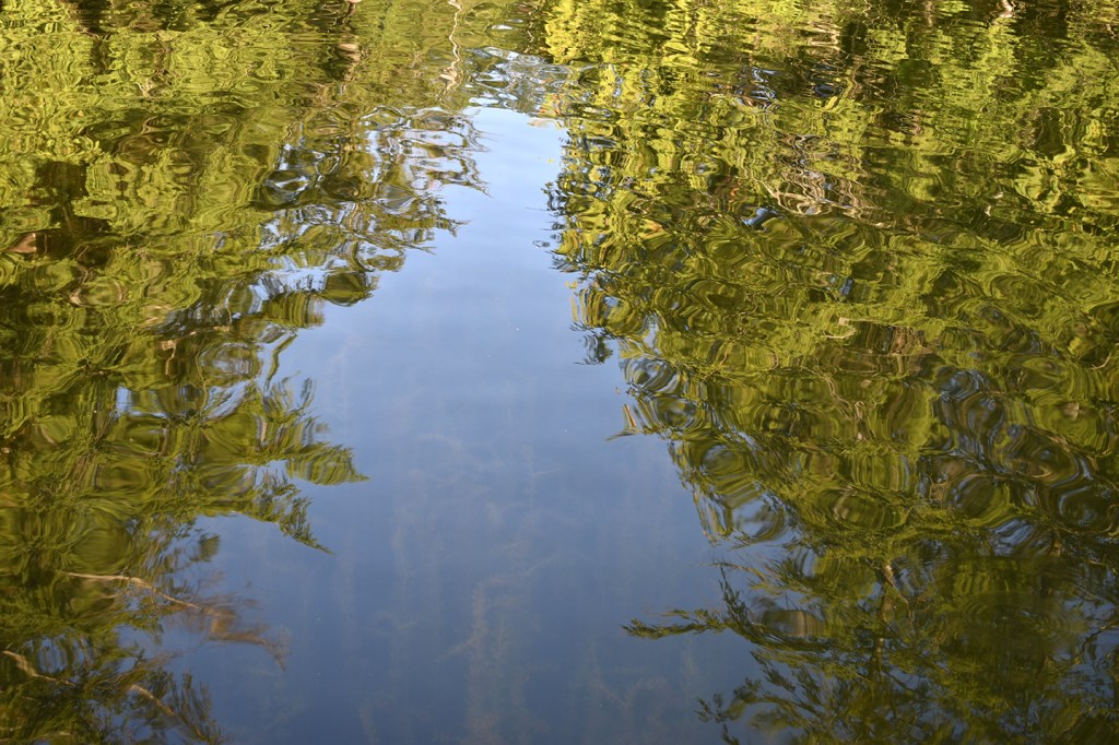 I liked to watch the constant movement of the reflections of the trees that border the lake, and of the small island. I kayaked out there one afternoon. There’s a cottage on the island, but I didn’t go all the way around to see it. I hugged the shore, looking for plant and wildlife.