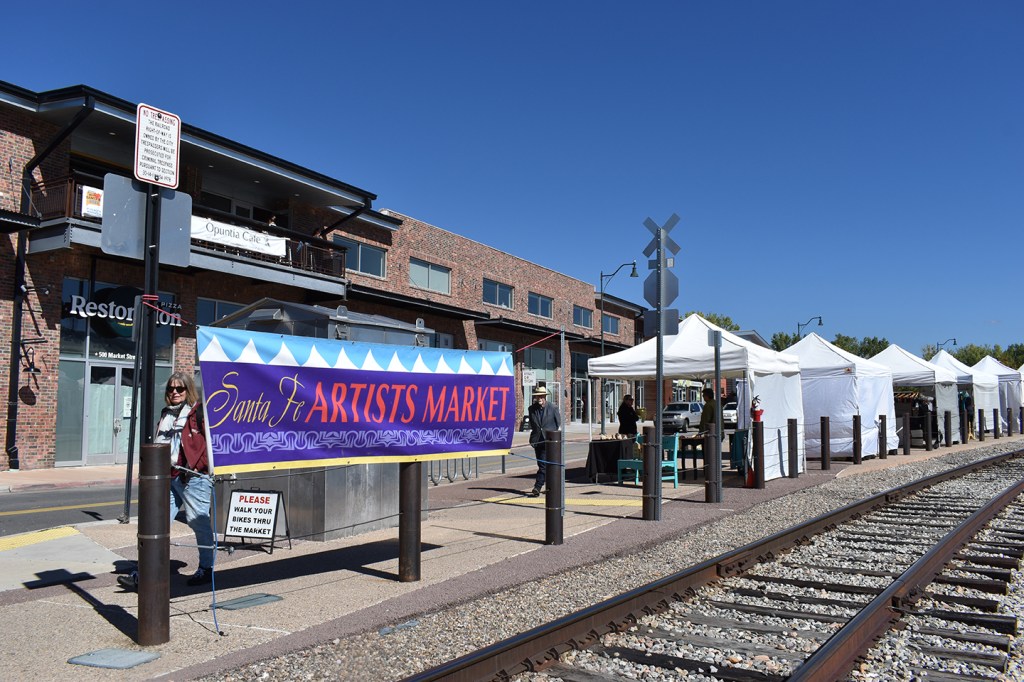 The train is running again, south to Albuquerque, and it graced me with a performance as I wandered among art stands. When I heard the train’s roar, I rushed up to capture it going by. After taking this series of photos, I spun around to see a woman grinning at me, happy to have shared the excitement of that moment.