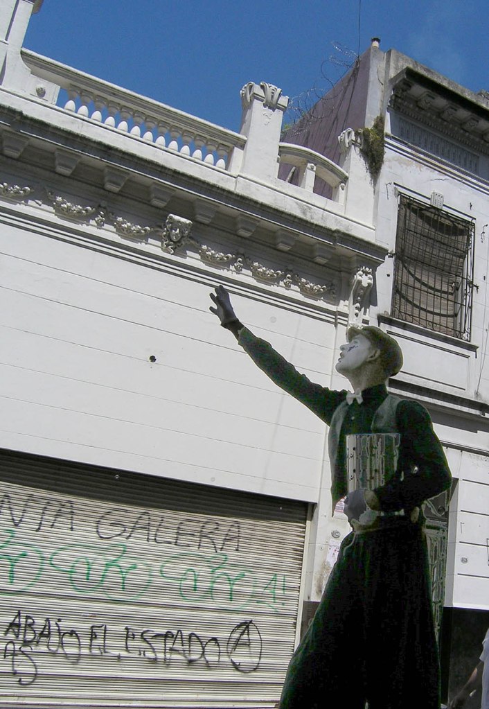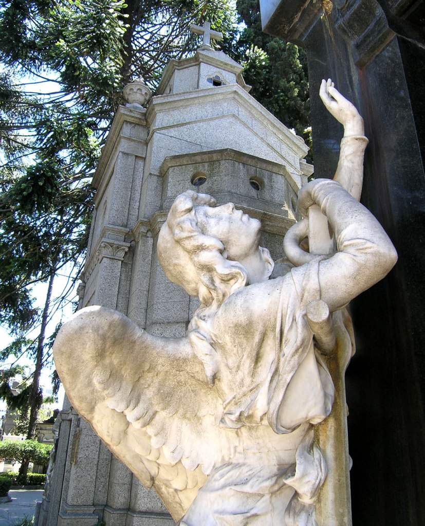 Unable to find an open restaurant in Palermo on Christmas day, we taxied to the Jewish quarter to find several restaurants serving dinner as usual. Over the holiday weekend, we shopped along Florida Street, and strolled the citylike pathways of Recoleta cemetery, well known for its statuary and famous inhabitants, admiring stately and ornate mausoleums, poignant statues.