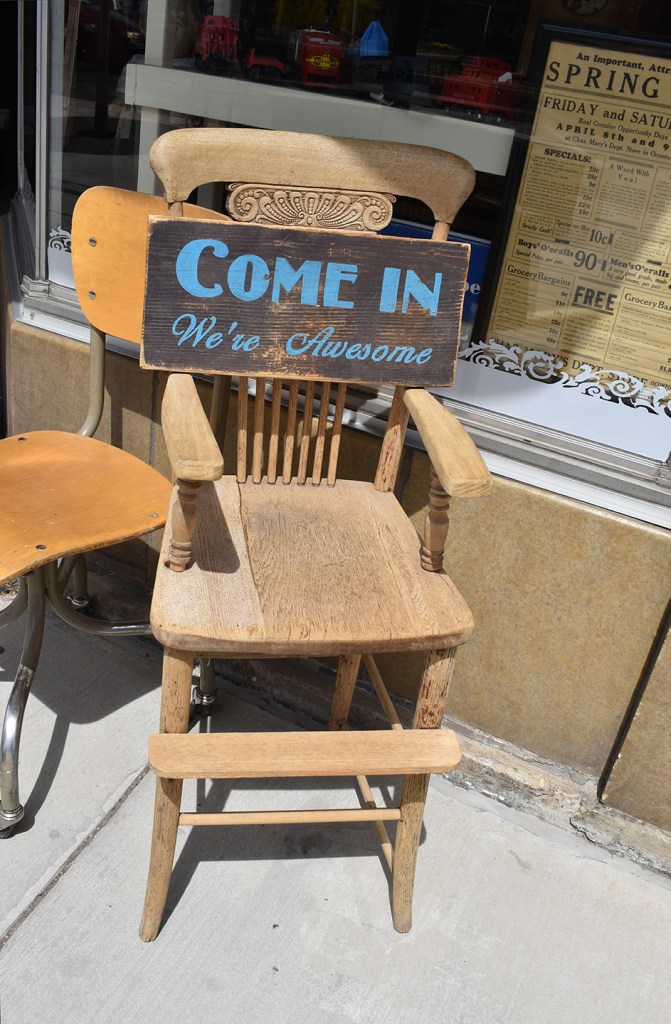 My favorite piece: the simple twisted iron branches suspending the large rock, outside the Robin’s Nest antique shop. Looks like a nose!