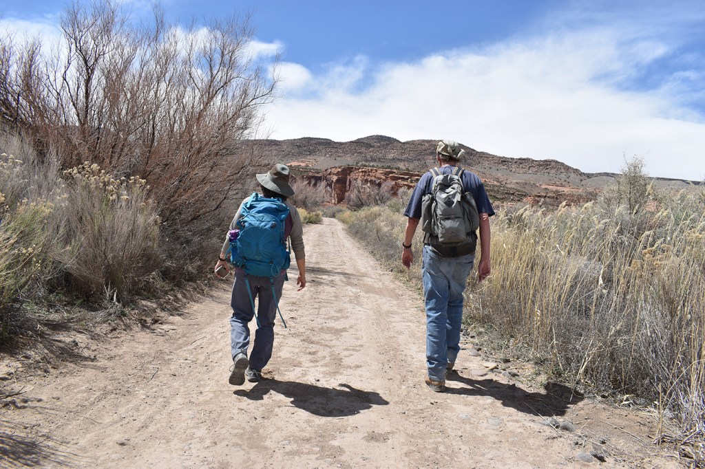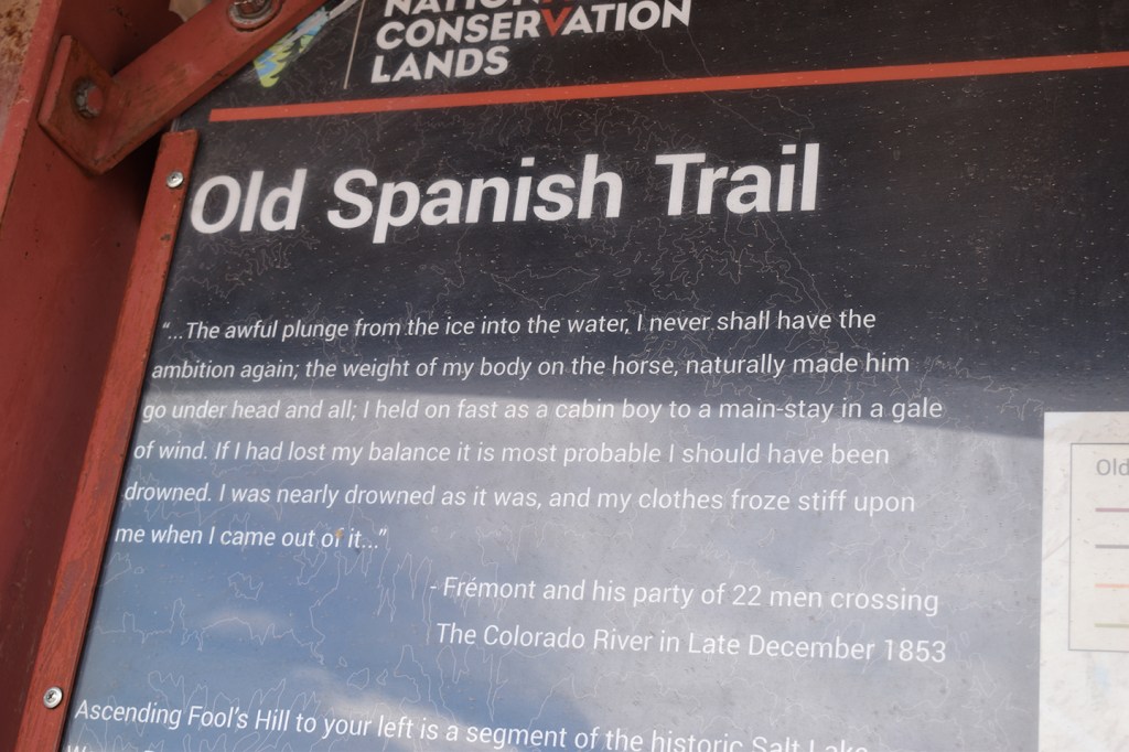The Dominguez-Escalante National Conservation Area covers a broad area along the Gunnison River, including Dominguez Canyon Wilderness, once home to the ancestral Ute and other Native tribes. It’s managed by the federal Bureau of Land Management’s National Conservation Lands. On the way to the trailhead, we crossed the Old Spanish Trail, stopping to read Fremont’s quote on their terrifying winter crossing of the Colorado River. The “Dobies,” adobe-colored hills, covered an area leading up to Dominguez, like the foothills standing before the Rockies.