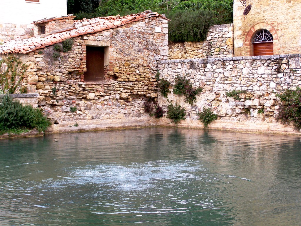 the natural springs and old village of Bagno Vignoni with an open air, thermal bath in the center