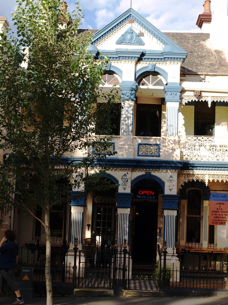Glebe, the neighborhood where I stayed, had old row houses with balconies and curlicued ironwork trim, reminding me of the French quarter in New Orleans, and great Asian restaurants. On my last day in the city, I took the ferry from the Circular Quay to Darling Harbour. From out in the harbor, you can see the classic view of the Opera House. Walked back to the hotel through Paddy’s market and Chinatown, lower George Street, sampling several parks and coffee shops along the way. At night, an Indian restaurant, and a tiny grilled seafood shop.