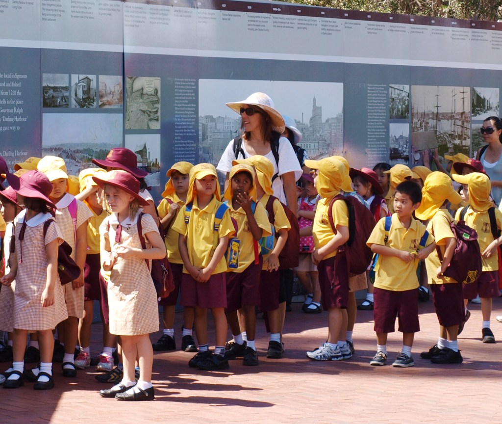 Sydney Harbour gleamed in the sunshine as I walked from the bridge and wharfs around to the Opera House, watched the ferries come and go, and breathed in the fresh sea air. There were many historic spots along the way. I poked into Cadman’s Cottage, a little museum named for a convict (for stealing a horse) who became coxswain or boat superintendent. Campbell’s Storehouses, a picturesque row of old tan brick buildings are now fronted by outdoor cafes. On Writers’ Walk, quotes by authors from Australia and about Australia are embedded in a zigzag walkway.