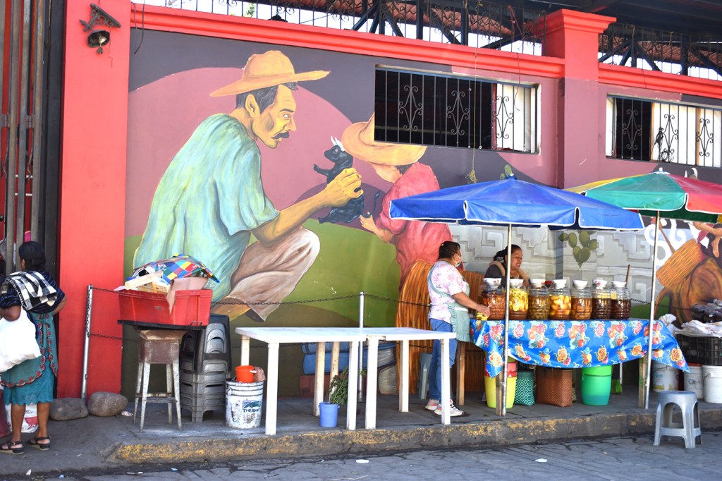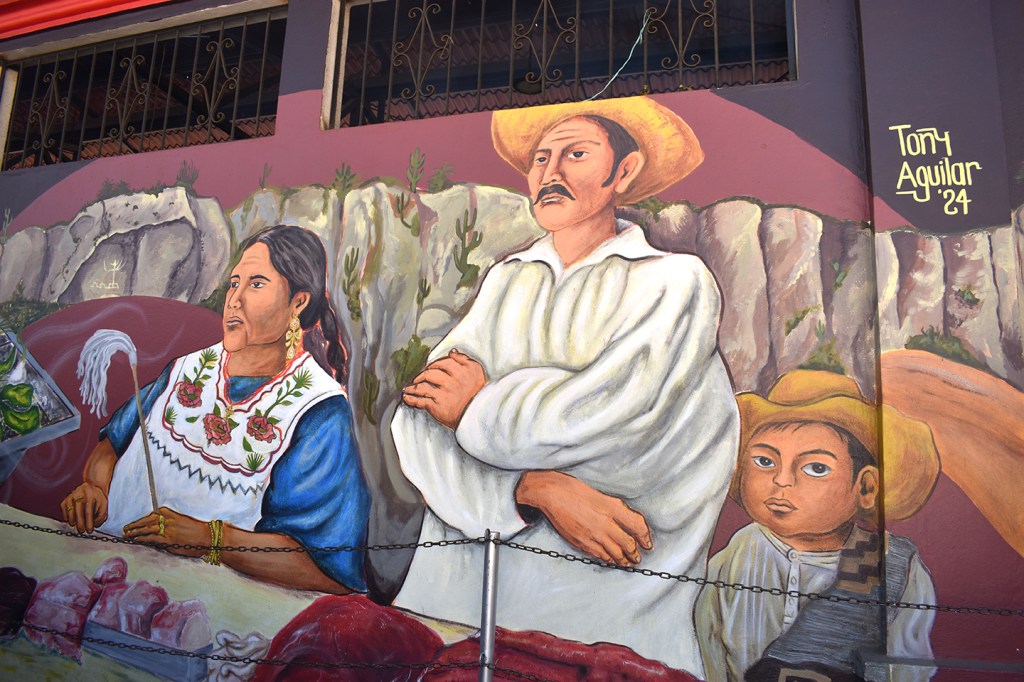 And lunch at Barbacoa Juanita, Juanita’s Barbecue, one of many barbecue booths in the market at Tlacolula de Matamoros. Juanita’s stall has been in the market for over 80 years, kept in the same family for four generations. Murals in the marketplace were eye-catching.
