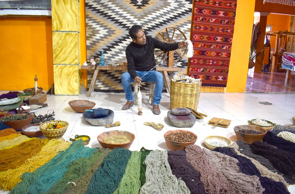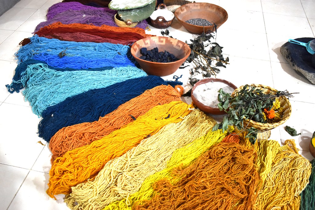 The town of Teotitlan del Valle is known for its weaving and textile traditions. A group of artisans displayed their handcrafted wares, dyed in rainbow colors using natural flora, and demonstrated the process of preparing the materials and weaving.