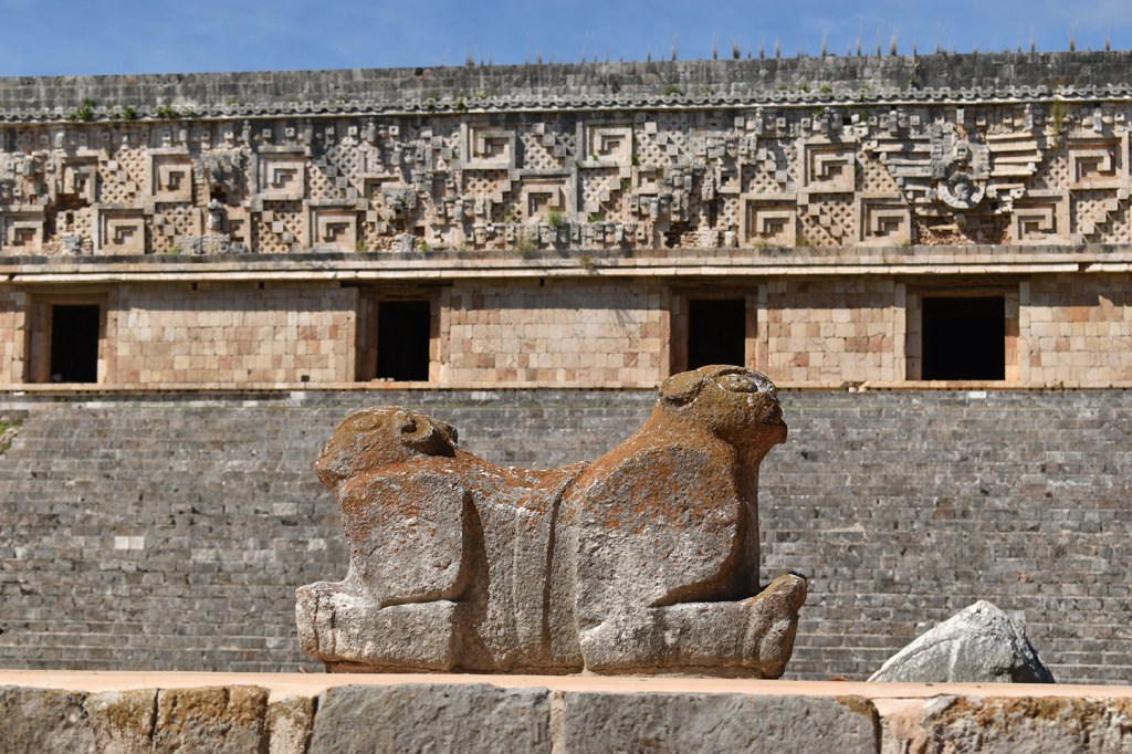 Each site that features architectural ruins that I visited in Mexico has its own unique characteristics, even among those Mayan sites. Uxmal has a number of quadrangle groups ringed by palace structures entered through corbel vaulted arches. It’s not one of the more visited sites, so it was pleasant to walk around without lots of tourists. I always find it interesting to imagine the people of the time wandering around the paths and gathering for ceremonies.