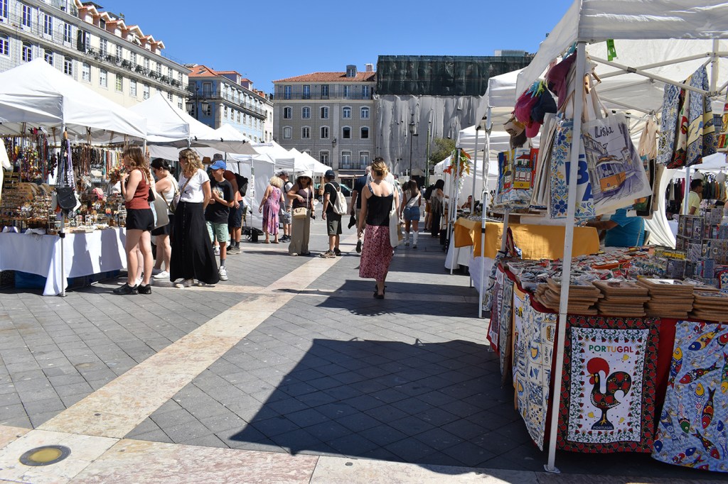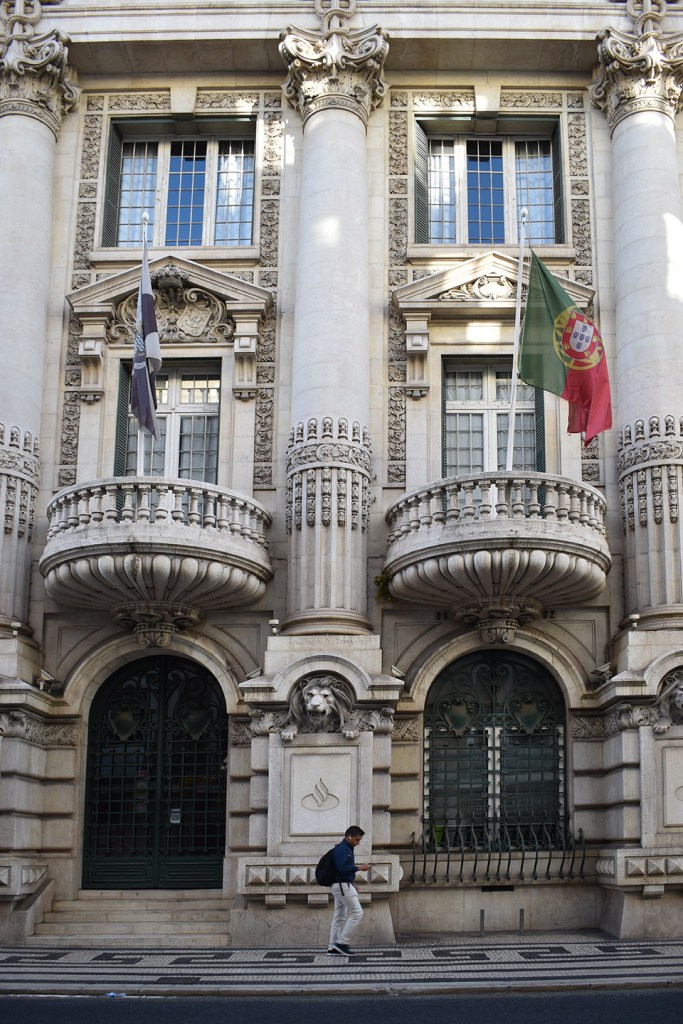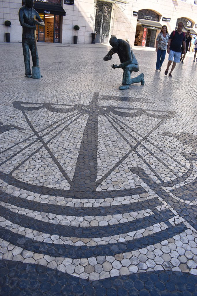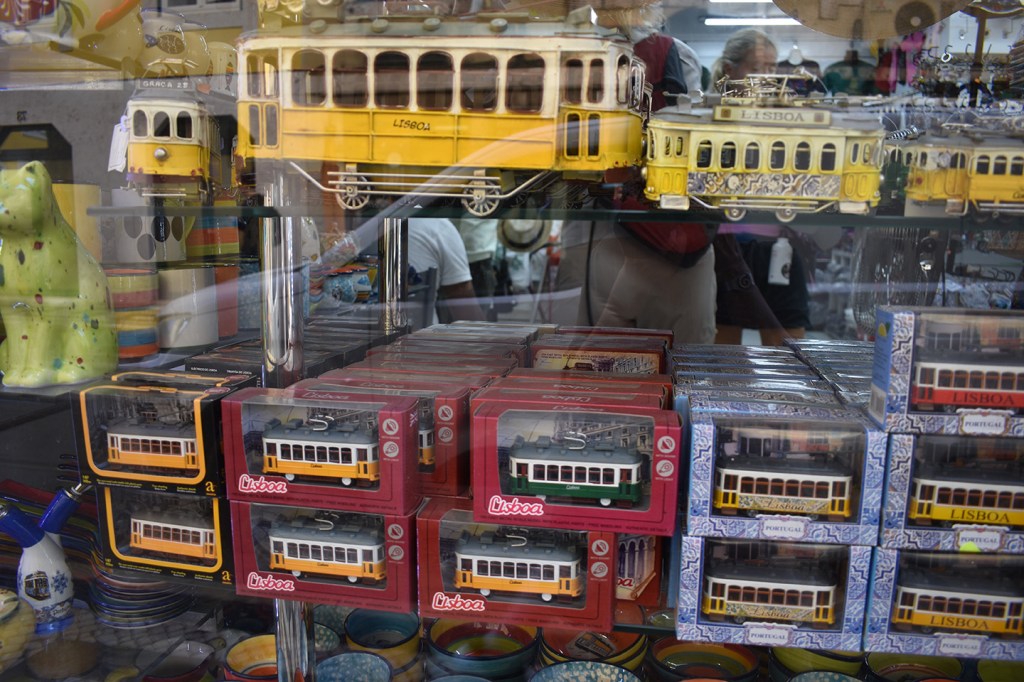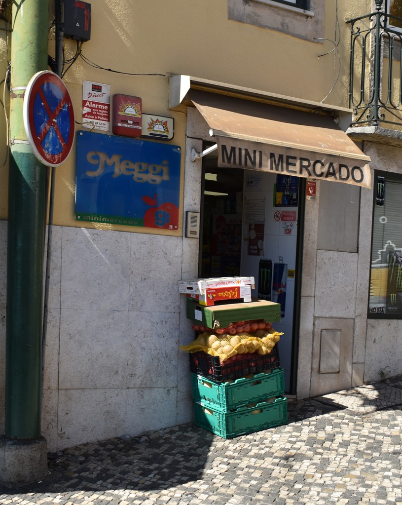Walking through the shop-lined streets of Baixa, it’s fun to poke in and out of the shops, noting places I might stop for lunch on the way back, and taking a different route each time. The Portuguese language is close enough to Spanish that signs and most conversation were understandable. The broad Praça do Comércio at bottom fronts the Tejo River.