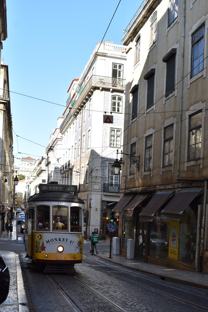 The famous number 28 trolley follows along narrow, tiled, curving roads, as it climbs the Alfama neighborhood.