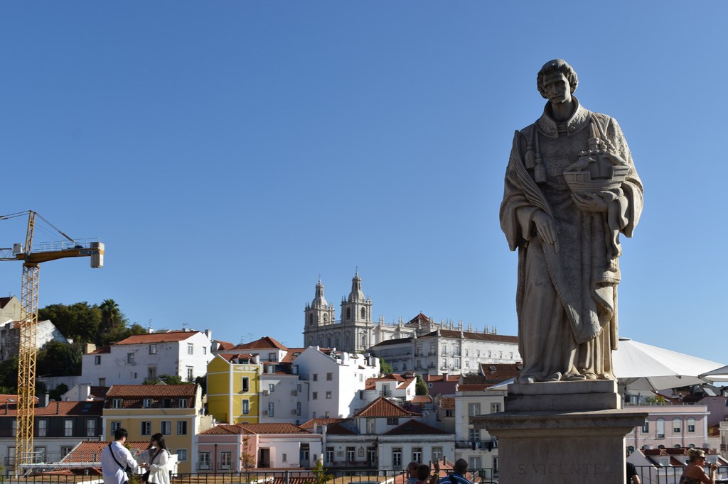 Wrought-iron balconies, painted tiles, red clay tiled roofs, and small plazas enliven the Alfama streets.