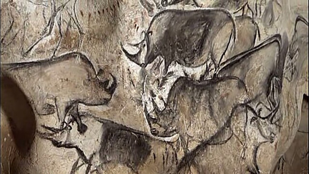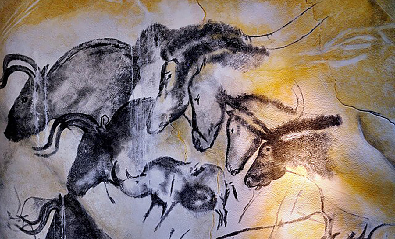 Jean Clottes, from the Ministry of Culture, authenticated the site. Prehistorians have been able to determine the order that many of the overlapping images were drawn, indicating, experts suggest, that the multiple figures were planned. I pictured them working together, like a Renaissance artist, with assistants providing light and materials, although it may have been a project for individuals to undertake. The artistry of these drawings from 36,000 years ago is as skillful as those in more recent caves from around 17,000. It’s a breathtaking sight to behold, even as a reproduction.